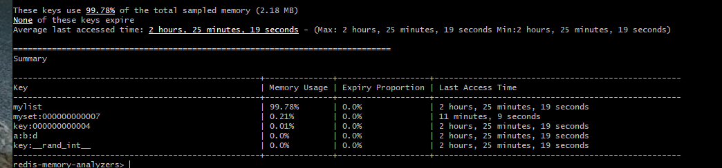 RDB Tools对于任何一位苛刻的Redis管理员来说都是非常实用的工具套件。我们能够想到的几乎所有用例,它都有着对应的工具。在此,我们仅关注它的内存分析工具。虽然不像RMA或Redis Sampler那样全面,但是RDB Tools提供了下面三个方面的重要信息: