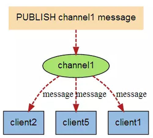 下图是有新信息发送给频道 1 时,就会将消息发送给订阅它的三个客户端: