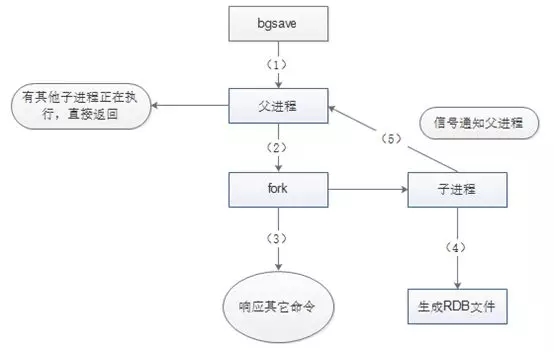 父进程 fork 后,bgsave 命令返回”Background saving started”信息并不再阻塞父进程,并可以响应其他命令。