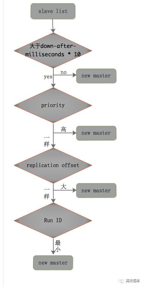 2)Sentinel leader选取slave节点中的一个slave作为新的Master节点。对slave选举需要对slave进行选举的方法如下:
