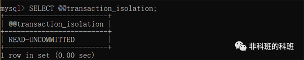 我: 先来演示一下读未提交,先把默认的隔离级别修改为READ UNCOMMITTED。