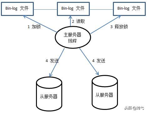 首先bin-log日志文件加锁,然后读取更新的操作,读取完毕以后将锁释放掉,最后将读取的记录发送给从服务器。