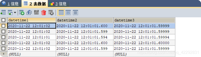 INSERT INTO test1 VALUES("2020-11-22 12:01:01.5", "2020-11-22 12:01:01.5995", "2020-11-22 12:01:01.599995");