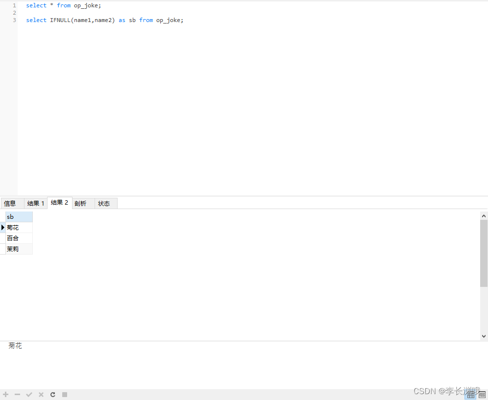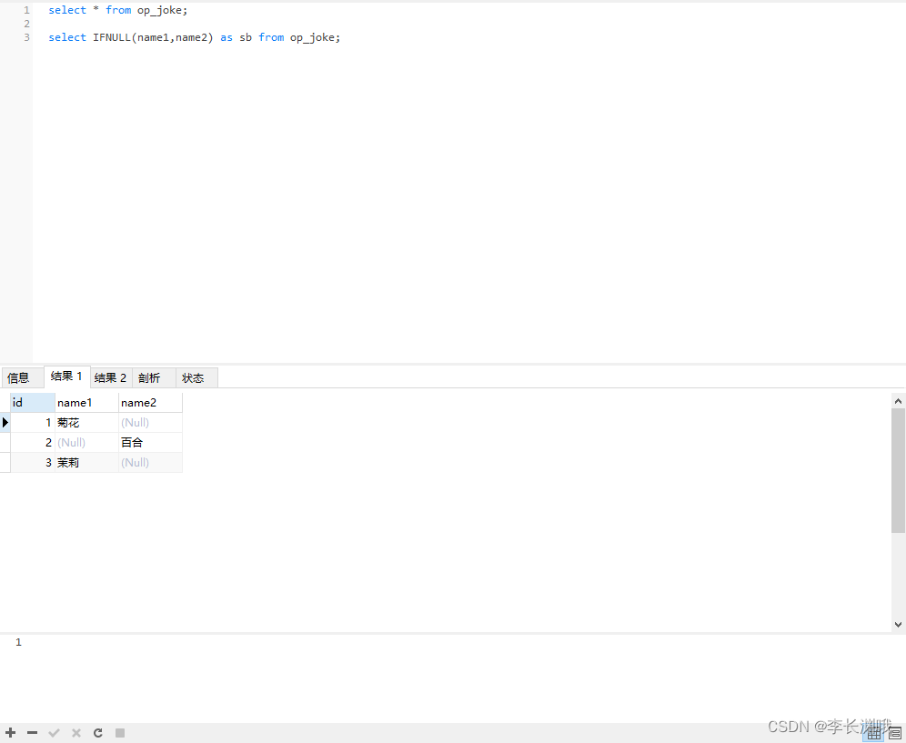 其中:如果 v1 不为 NULL,则 IFNULL 函数返回 v1; 否则返回 v2 的结果。