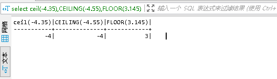 3.获取整数的函数CEIL(x)、CEILING(x)和FLOOR(x)