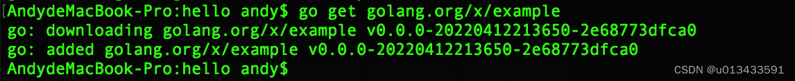 3.初始化模块 - 新创建一个hello模块,依赖golang.org/x/example模块