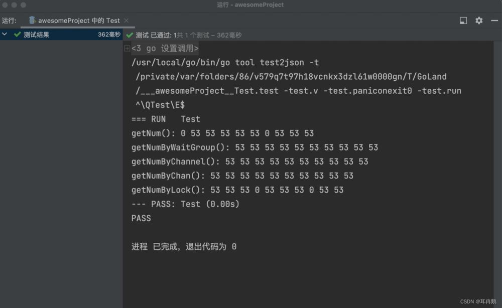 在case中,getNum先声明一个变量num,之后在goRoutine中单读对num进行设置,而此时程序也正从函数中返回num, 因为不知道goRoutine是否完成了对num的修改,所以会导致以下两种结果: