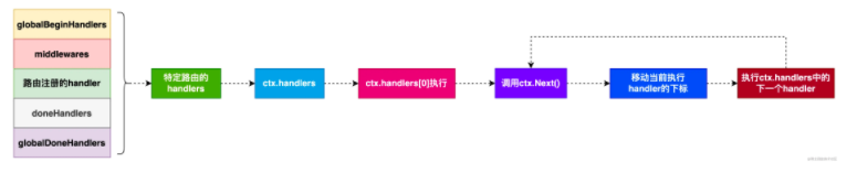 }同样,也是将中间件加入到了路由的Handlers切片中。