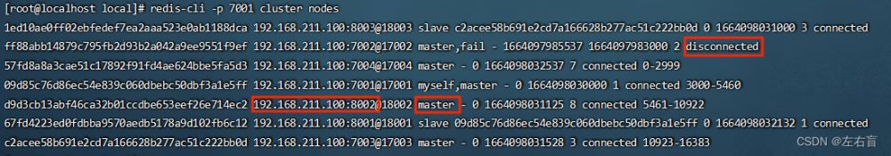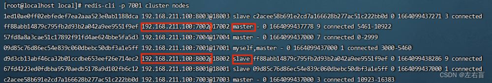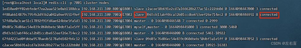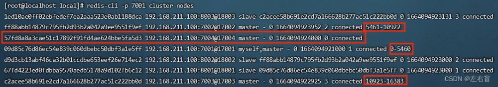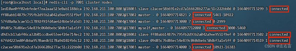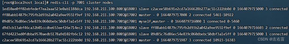 redis-cli -p 7001 cluster nodes