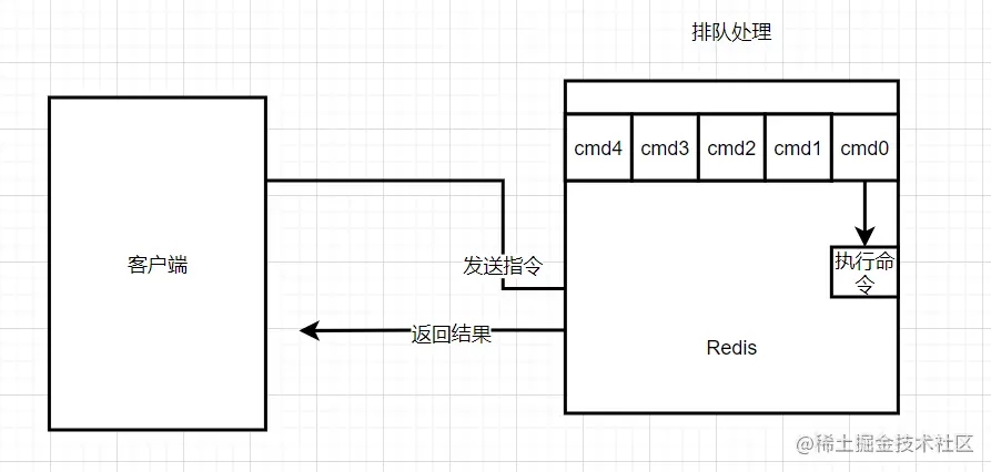 Redis是单线程来处理命令,所以一条命令从客户端到达服务端不会立即被执行,所有的命令都会进入一个队列,然后逐个被执行。