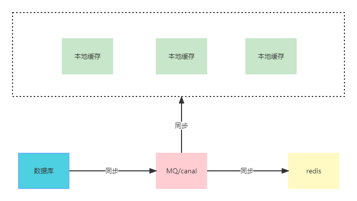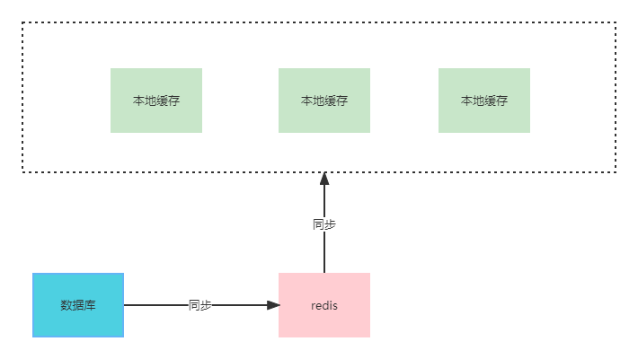 在他们争论不休的情况下,有人提出不然就同时使用,当数据库挂了,切换到redis,redis挂了,使用本地缓存。这个方案得到不少人的同意,包括这两个争论不休的技术。但使用这种方案,就得考虑多级缓存数据如何同步。