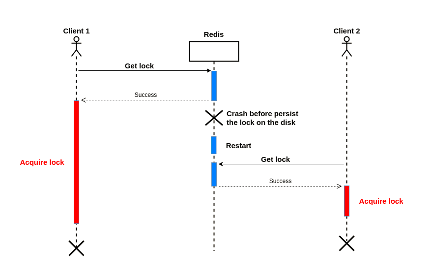 所以在最坏的情况下,将一个加锁数据保存需要15分钟,如果在加锁成功时Redis服务掉电重启,则无法恢复内存中的加锁数据,其它客户端同样可以获取到相同的锁: