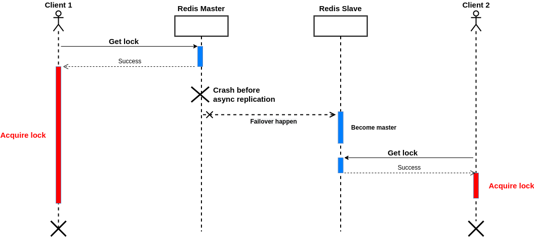 问题是在复制发生之前,主服务器可能出现故障,并发生故障转移;在此之后,如果另一个客户端请求获得锁,它将成功!或者假设存在一个临时的网络问题,因此其中一个副本没有接收到命令,网络变得稳定,故障转移很快发生;没有接收到命令的节点成为主节点。