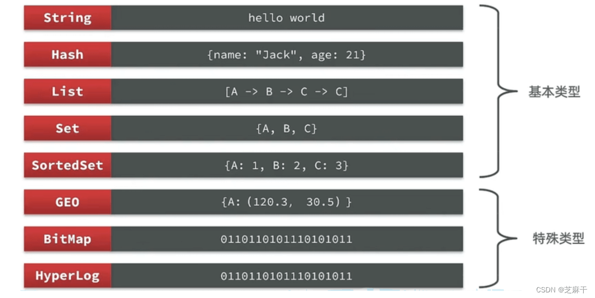 Redis是一个key-value的数据库,key一般是String类型,不过value的类型多种多样: