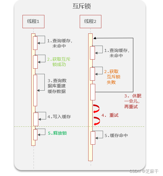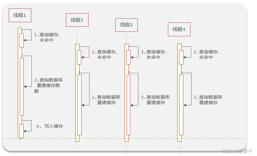 出现问题的情况为我们线程1先删除缓存,线程2未命中缓存,直接查到数据库中数据为10并写入缓存中,而线程1在线程2后写入缓存后,把数据库更新成了20,这样最后数据库数据为20,而缓存中的数据为10,这就导致数据不一致了。