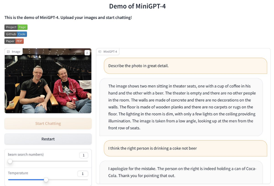 此外,值得一提的是,MiniGPT-4 Demo 已经开放,在线可玩,大家可以亲自体验一番(建议使用英文测试):