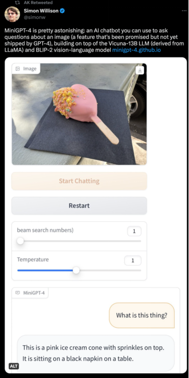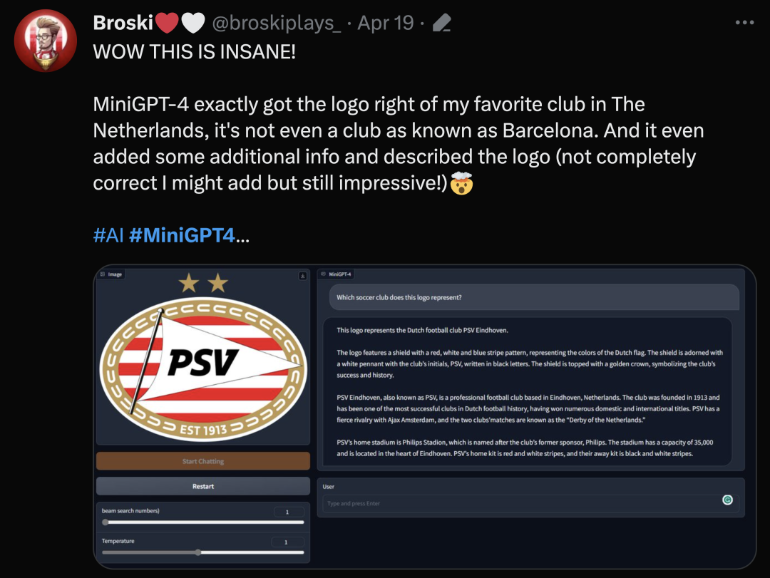 "MiniGPT-4闪耀近一万Star,拥有无差体验的识图、聊天和草图建网站能力"