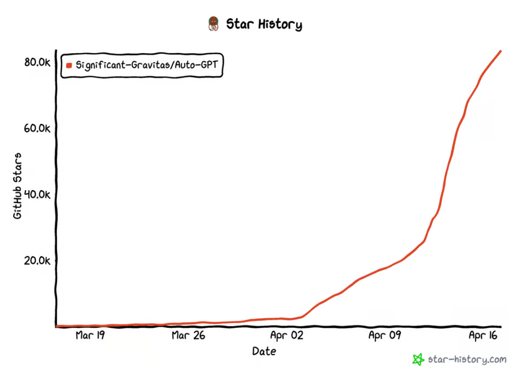 Auto-GPT Github 受欢迎程度呈指数增长,比历史上任何代码库都快。