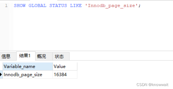 SHOW GLOBAL STATUS LIKE 'Innodb_page_size';