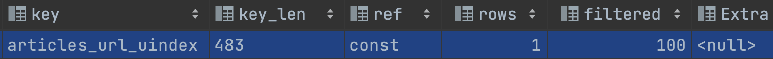 - key:实际使用的索引,可以查看本次查询是否用到了索引。