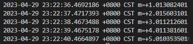 以下是一个简单的定时器示例,它每隔1秒打印一次当前时间: