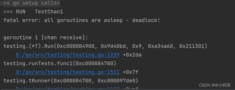 对此我们对于有缓冲的chan得出的结论:读取是阻塞的。