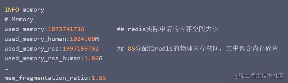 - 大于1:说明内存有碎片,一般在1到1.5之间是正常的。