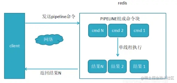 - pipeline 每批打包的命令不能过多,因为 Pipeline 方式打包命令再发送,那么 Redis 必须在处理完所有命令前先缓存起所有命令的处理结果。这样就有一个内存的消耗。