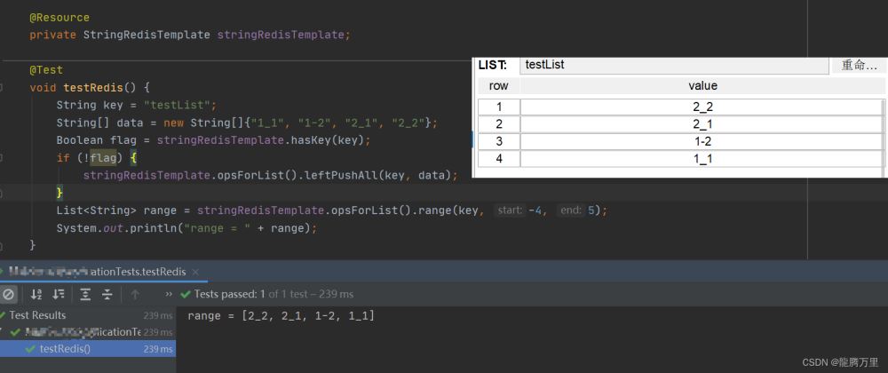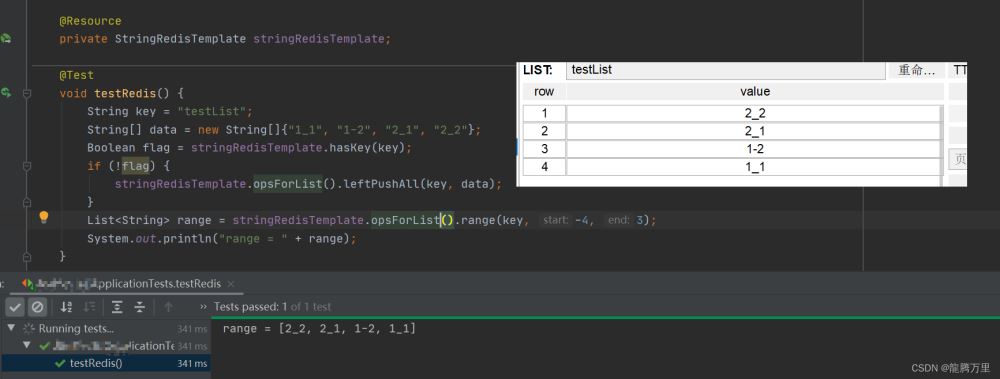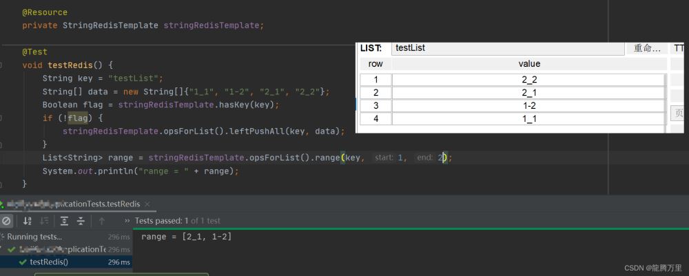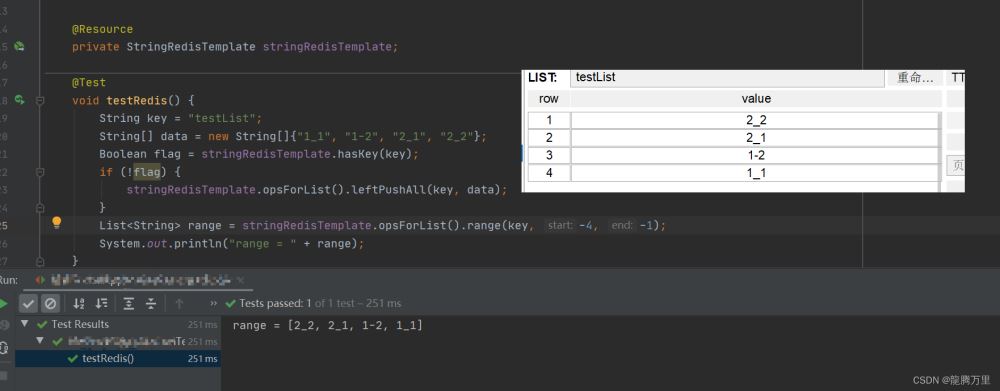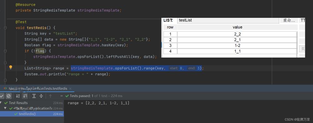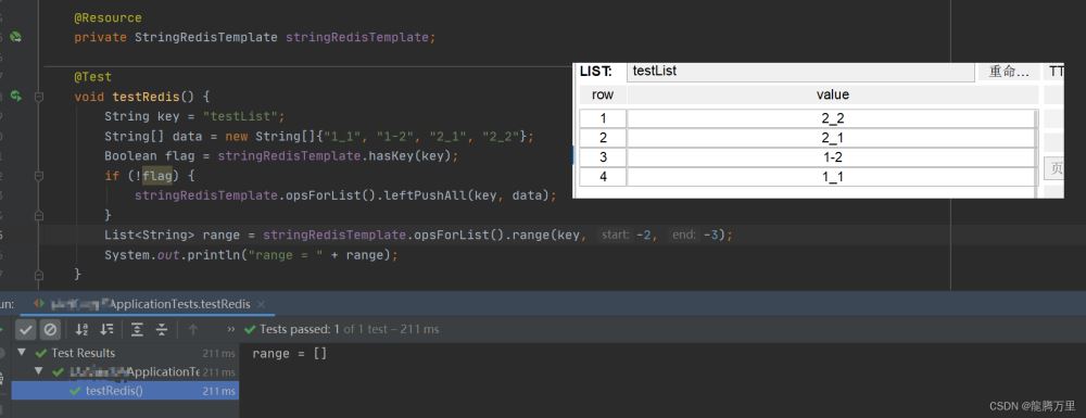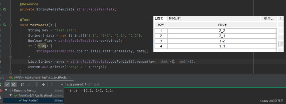 测试stringRedisTemplate.opsForList().range(key, start, end)的使用