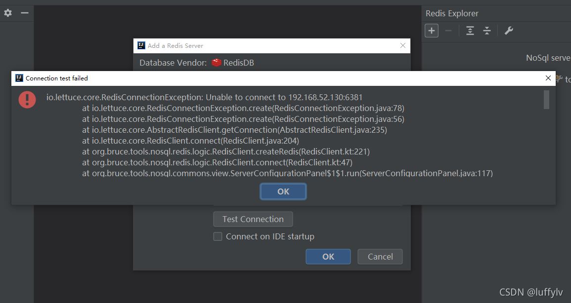 点击Test Connection后连接失败,失败信息如下: