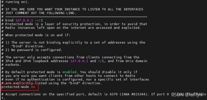 方式一、禁用redis的保护模式,即protected-mode no