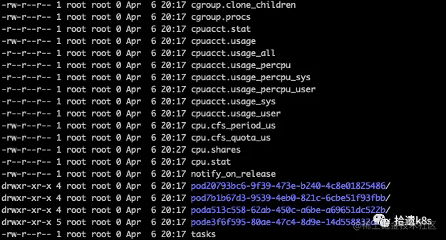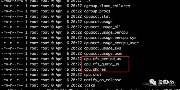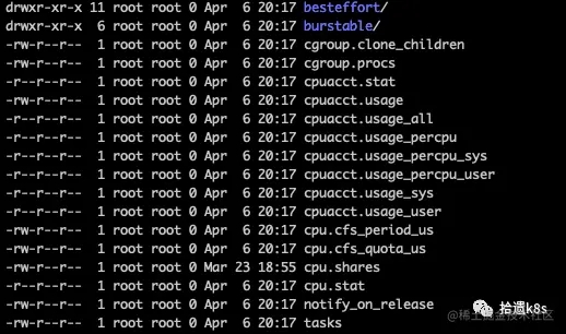 k8s的cpu限制的cgroup目录在 /sys/fs/cgroup/cpu/kubepods ,该目录内容如下