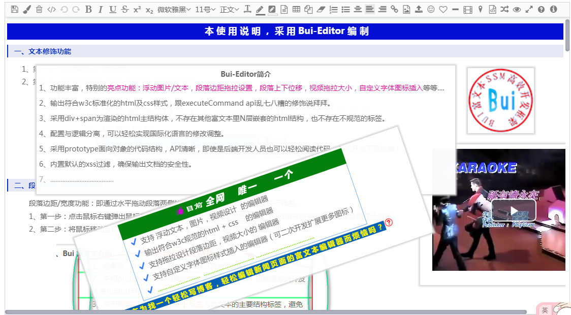 Bui Editor public是一款具有丰富功能的富文本编辑器。