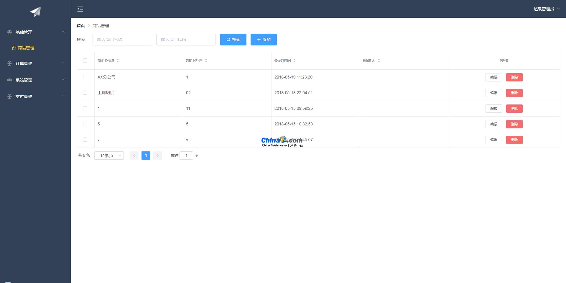 vue-elementUI是一个以vue搭建的后台管理界面模版,本项目的定位是后台管理系统,已经完成模块有用户管理、菜单管理、角色管理、公司管理、权限管理、支付配置等。技术栈:vue2+vuex+vue-router+webpack+ES6/7+axios+elementUI+阿里图标iconfont功能:登录路由拦截商品管理(增加、编辑、搜索、删除)角色管理(增加、编