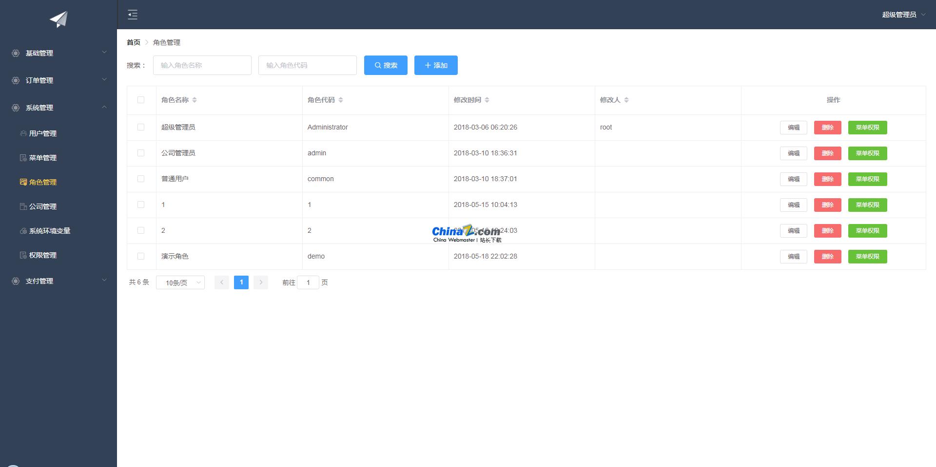 角色管理(增加、编辑、搜索、删除、权限管理)