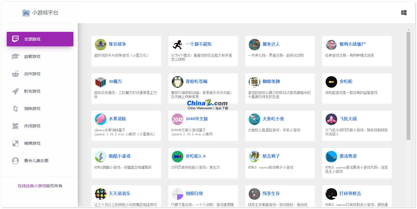 在线70个小游戏是一个以html+css+js进行开发的小程序源码,里面包含了70个经典的小游戏,源码直接放到网站上即可运行。