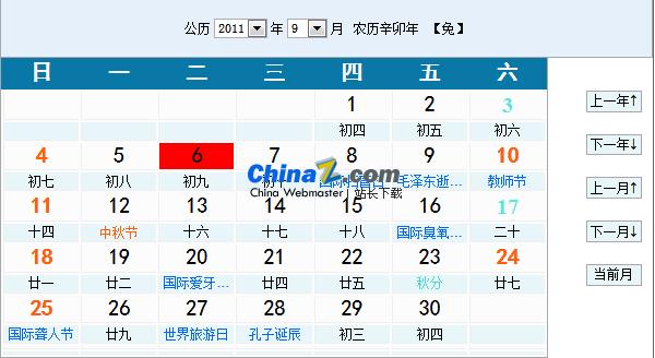 JS万年历是一款兼容IE、火狐、谷歌等主流浏览器的万年历。