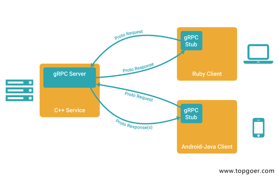 gRPC支持多种语言,并能够基于语言自动生成客户端和服务端功能库。目前已提供了C版本grpc、Java版本grpc-java 和 Go版本grpc-go,其它语言的版本正在积极开发中,其中,grpc支持C、C++、Node.js、Python、Ruby、Objective-C、PHP和C#等语言,grpc-java已经支持Android开发。