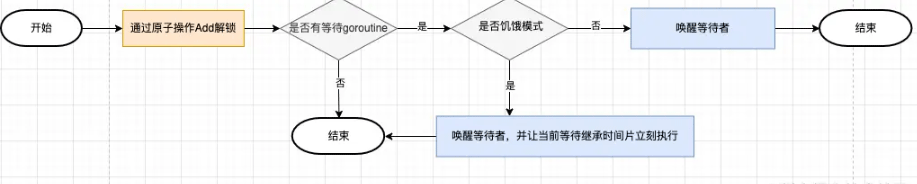 通过原子操作add解锁,如果仍有goroutine在等待,唤醒等待的goroutine