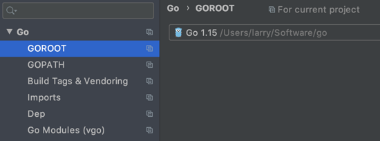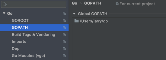 $ go env GO111MODULE="on" GOARCH="amd64" GOHOSTOS="darwin" GOMODCACHE="/Users/larry/go/pkg/mod" GOPATH="/Users/larry/go" GOPROXY="https://mirrors.aliyun.com/goproxy/" GOROOT="/Users/larry/Software/go" GOTOOLDIR="/Users/larry/Software/go/pkg/tool/darwin_amd64" GCCGO="gccgo" CC="clang" CXX="clang++" CGO_ENABLED="1" PKG_CONFIG="pkg-config"