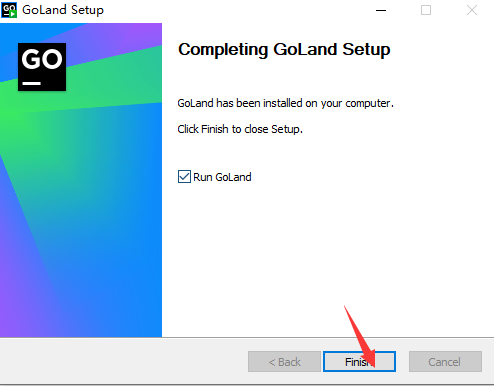5.等待几十秒钟安装后,选中运行目标并单击Finish,GoLand将启动