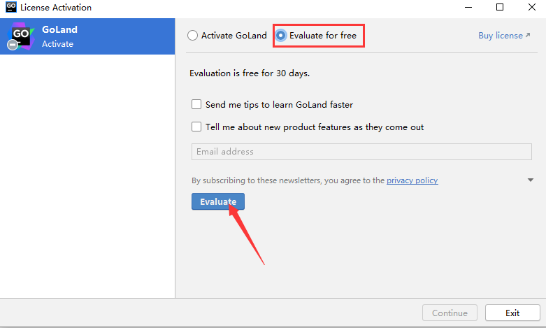 6.勾选上 Evaluate for free,然后单击Evaluate