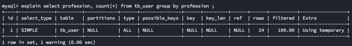 explain select profession, count(*) from tb_user group by profession ;