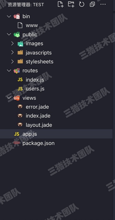 这里可以看见 生成的目录以及文件。 其中 app.js 为入口文件