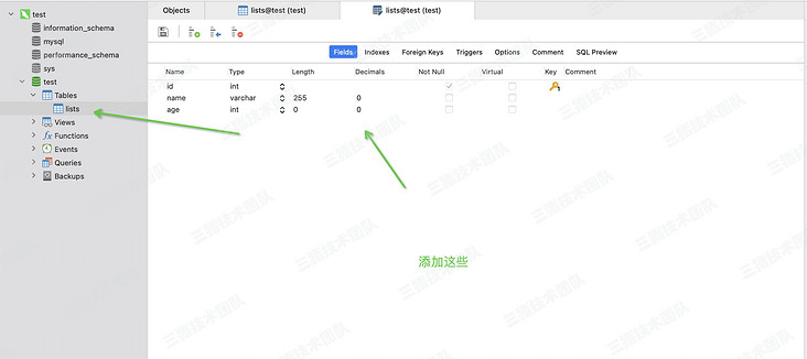 新建连接以后。启用连接。创建一个表。 比如我们将这个表的表名设置为lists