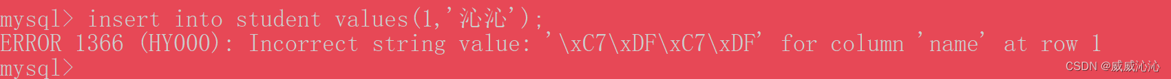 报错:非法的字符值 放入 ‘name’ 为什么不能存入中文呢?