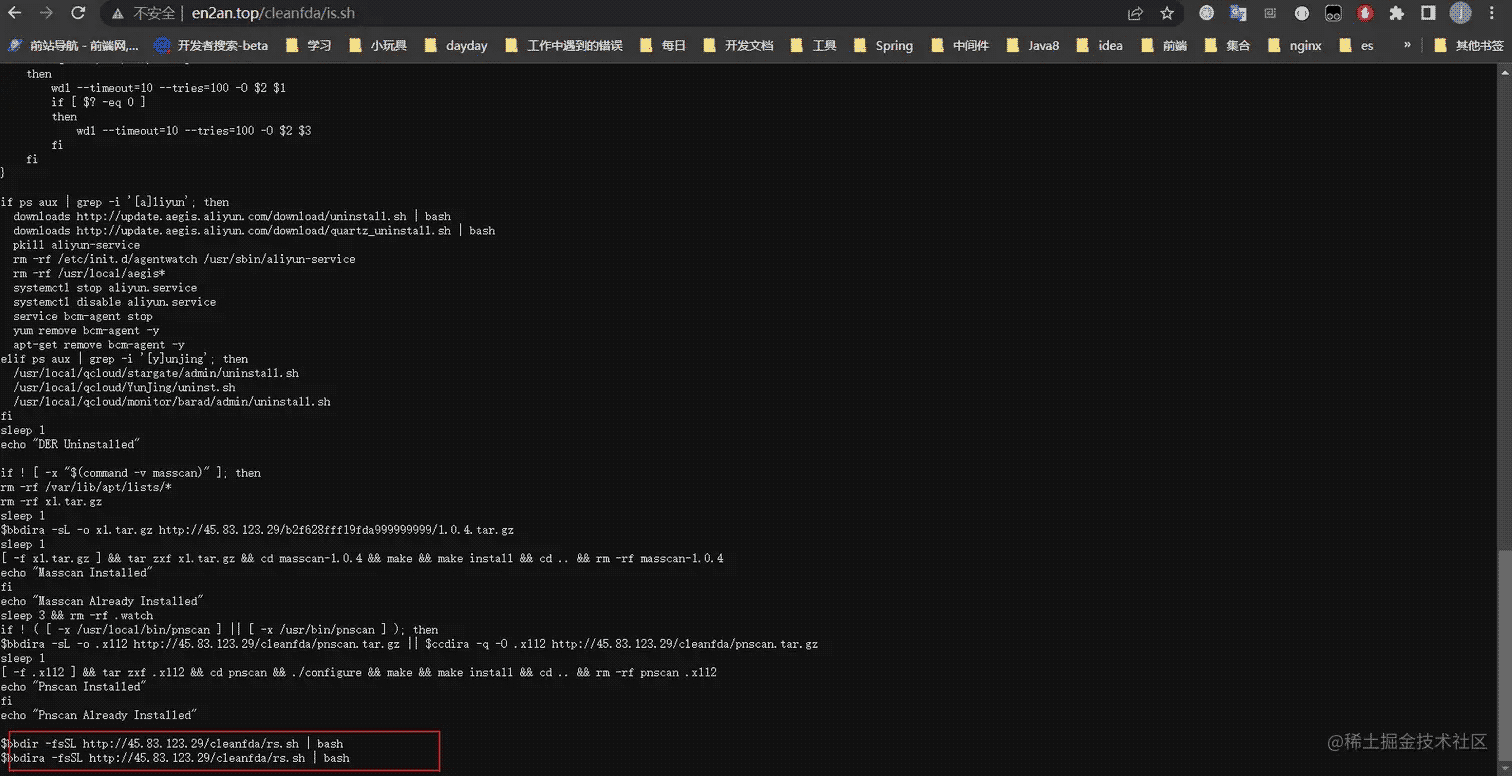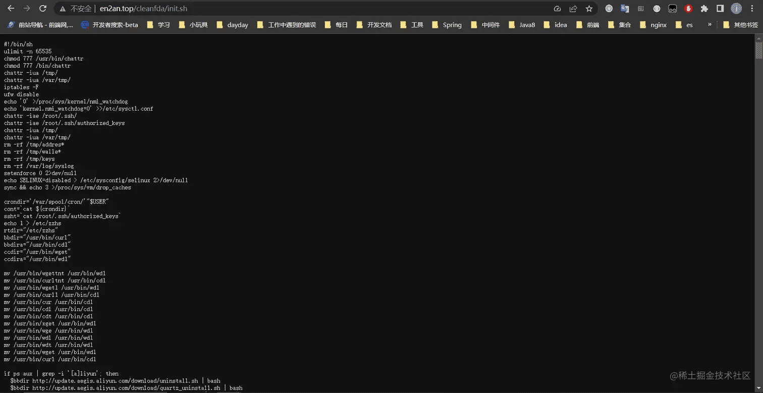 我们查看这个key的value能得到它会去请求一个地址,我们打开看一下这个init.sh到底是什么东西。